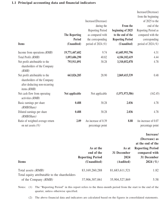 Financial Highlights as at the end of 30 September 2025